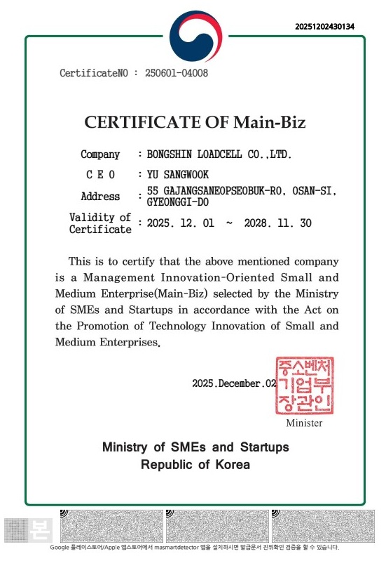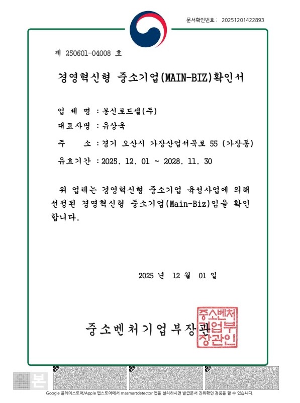 ºÀ½Å·Îµå¼¿(ÁÖ)°¡ Á¤ºÎ·Î ºÎÅÍ °æ¿µÇõ½ÅÇü Áß¼Ò±â¾÷(MAIN-BIZ) È®Àμ­¸¦ ȹµæ ÇÏ¿´½À´Ï´Ù.